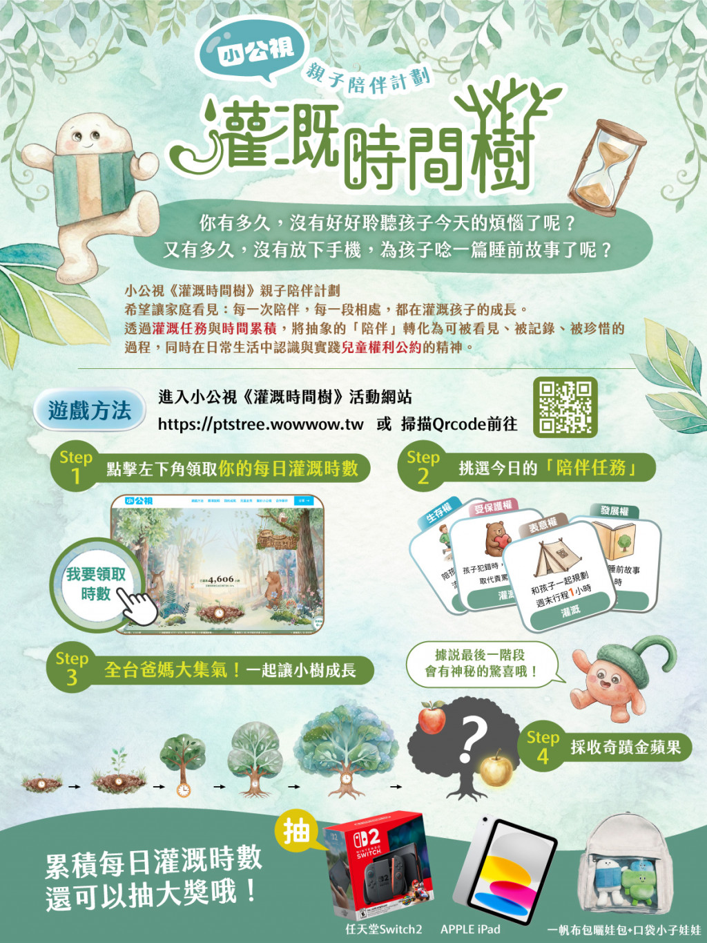 【小公視】「灌溉時間樹」線上親子活動,陪伴灌溉就有機會抽Switch2、iPad等多項好禮